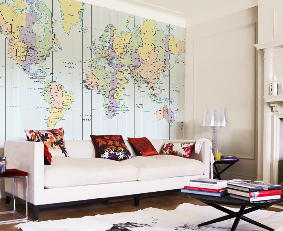 World Time Zones Map Wallpaper Mural Giant World Map Peel & Stick